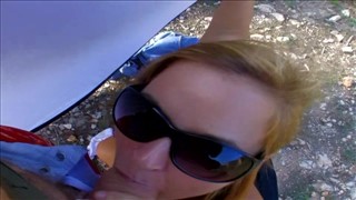 Łysy liże jej opalone ciałko na świeżym powietrzu