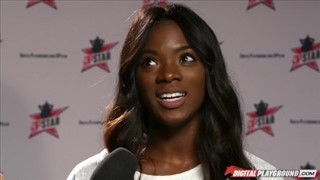Piękna brunetka ciągnie delikatnie ogromną pałę