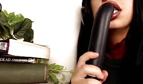 Czarnowłosa niunia testuje ulubioną zabaweczkę